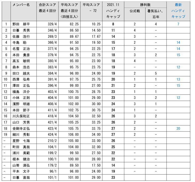 最新ハンディキャップ