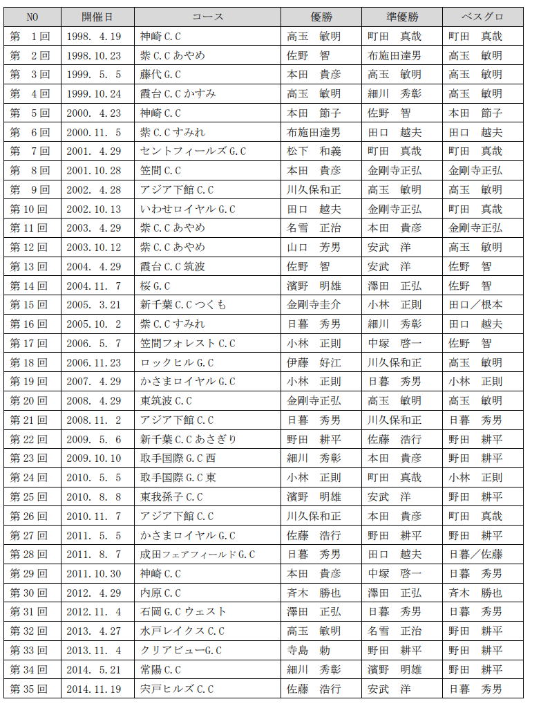 歴代表彰者 ①公式戦コンペ(1~35回)